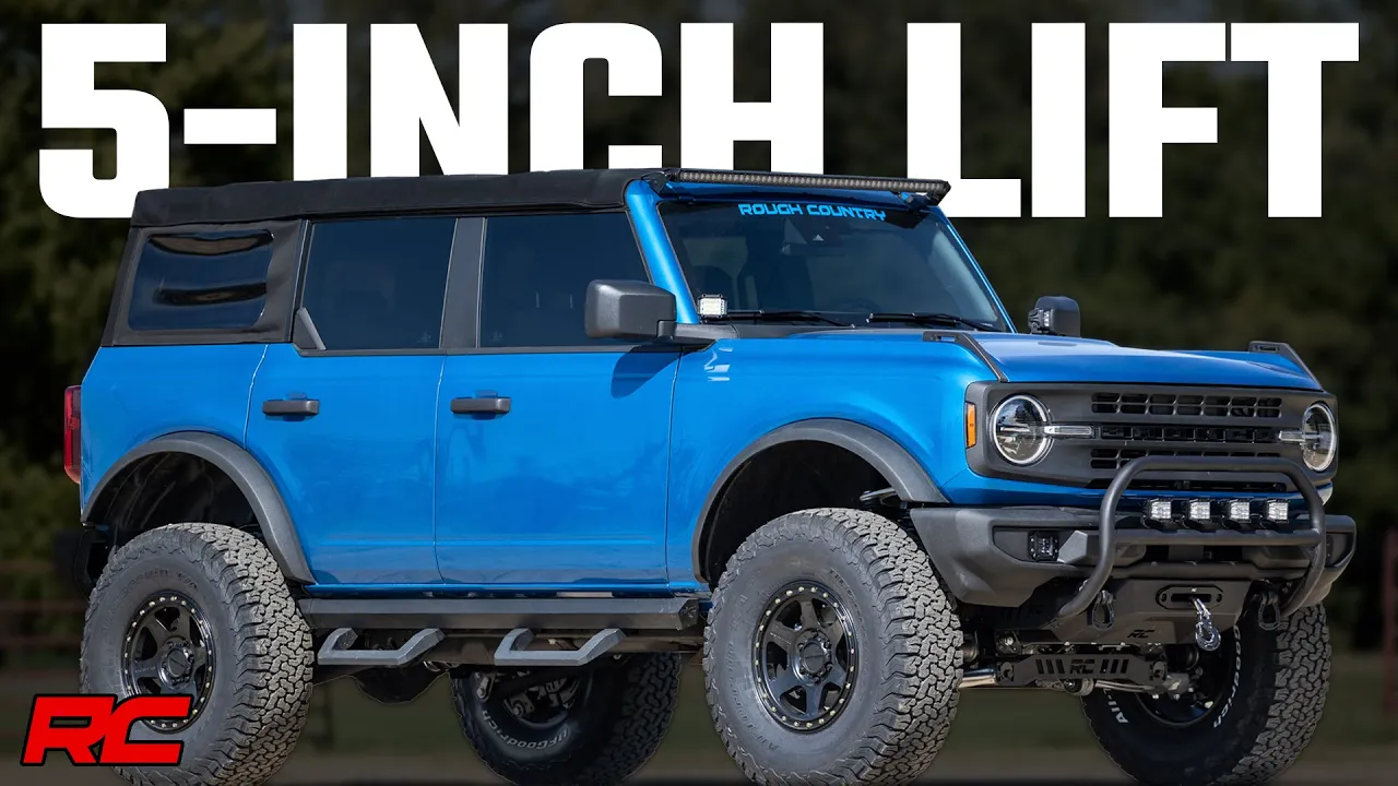 Conquer the Trail with Confidence: Unleash your Bronco's true potential with Rough Country's 5-inch Suspension Lift Kit, designed to deliver improved ground clearance and a bold, aggressive stance that commands attention on and off-road. This all-in-one upgrade levels the front with the rear for a clean, balanced profile while creating room for 35" tires, giving you the clearance and capability to tackle rugged terrain with ease.