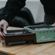 This is the Kovea All-In-One Mini. It comes with everything packed into a sturdy hard case. The ceramic-coated cast iron pan stows under the burner for transport and the removable pot support provides easy cleaning. It's extremely versatile and compact, and in Seafoam Green and Milk Chocolate Brown, it's stunningly stylish and perfect for cooking great meals while Overlanding.