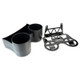 The IAG Dual Rear Cup Holder fastens to the rear trim panel of the OEM center console. The panel pops off with no tools. The bracket for the cup holder is secured to the console trim piece using existing OEM hardware. Once the bracket is mounted, the cup holder assembly fits securely in place.